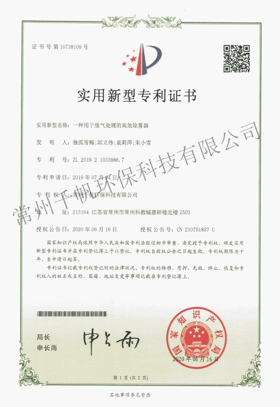 常州千帆環??萍加邢薰究偛课挥诔V菘平坛牵闪⒂?013年3月,是以技術研發和專業設計為先導、工程建設為主打的新型環保產業公司;環保工程設計資質、總承包資質、安全生產許可證等資質齊全。公司2017年被評定為國家高新技術企業,也是上海股權交易中心掛牌企業(企業代碼203109),公司在環保領域技術力量雄厚。公司下設常州千帆環境工程設計院有限公司,并和常州大學共建一座環境工程實驗室,和中國科學院成都化學研究所、南京理工大學、常州大學、江南大學等高校保持長期的產學研合作。經過6年的發展,公司在常州及周邊地區完成了近500家“三廢”處理工程,在廢物治理領域具備了成熟的技術條件、積累了豐富的工程經驗。
